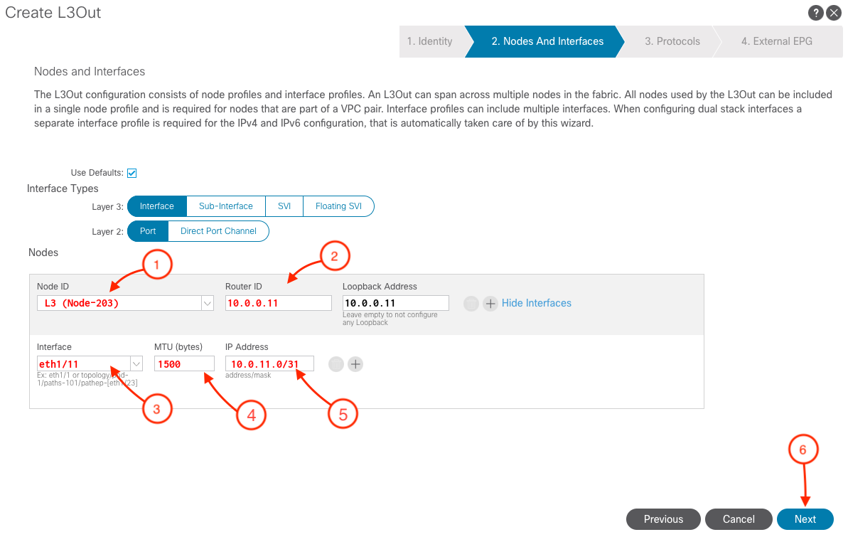 NOTE: By default ACI uses OSPF Area 1. We will be using Area 1 to connect to the outside