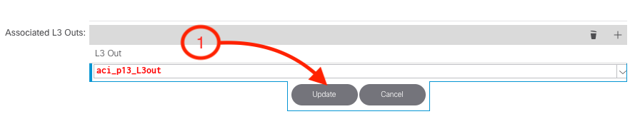 In this step you will be associating the previously created External Network aci_p13_L3out to the