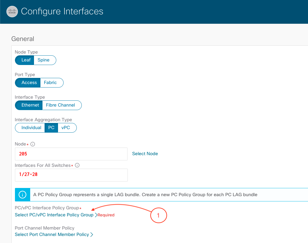 1. Click on Select PC/vPC Interface Policy Group