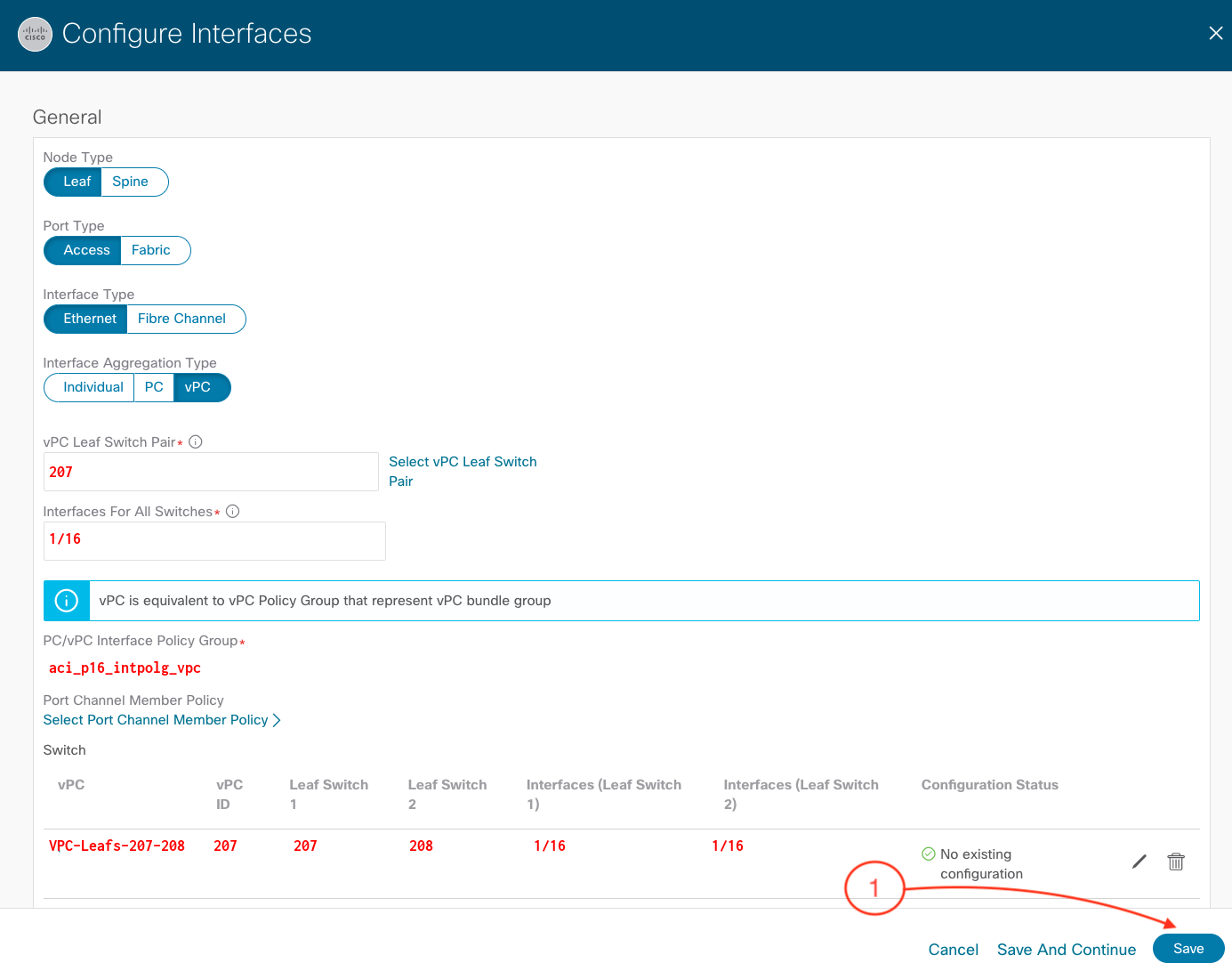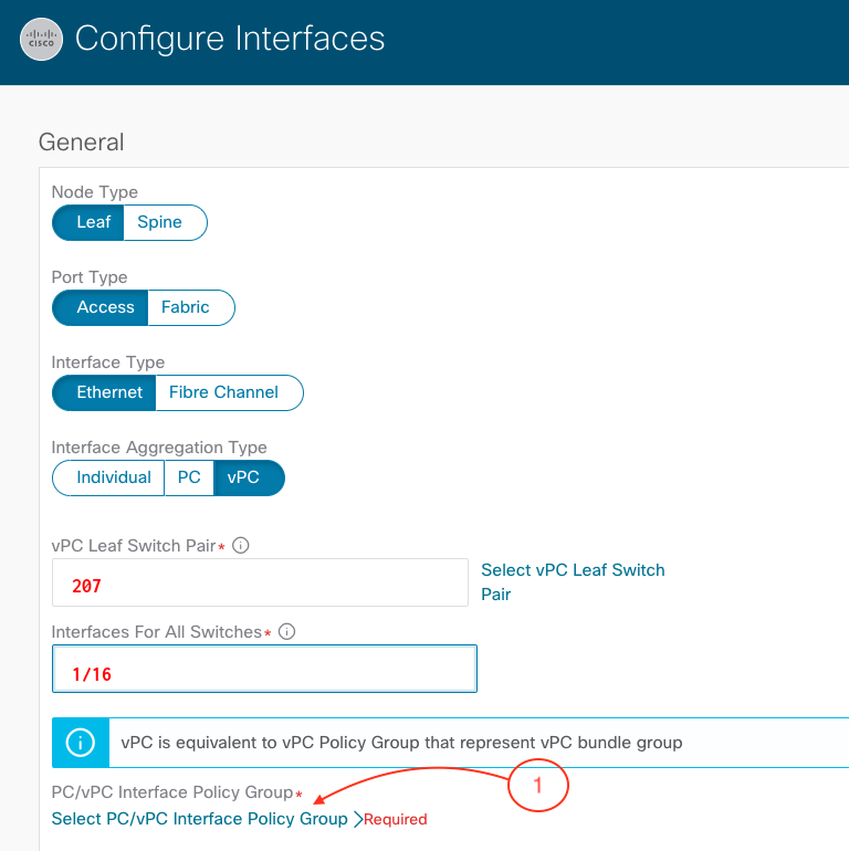 Step 2 - Switch to Interface Aggregation Type to vPC