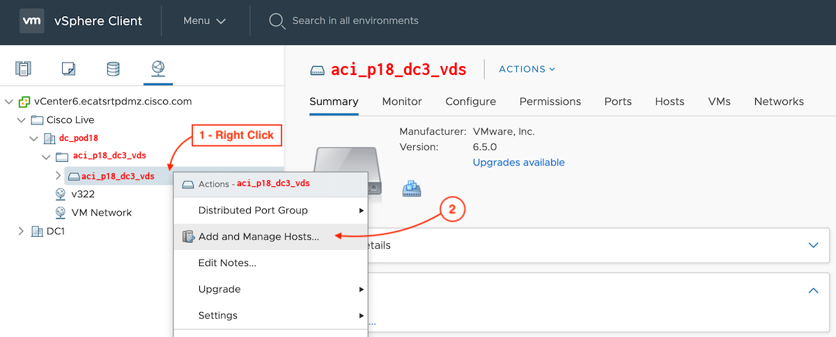 - Right-Click on your vDS created by APIC, aci_p18_dc3_vds
