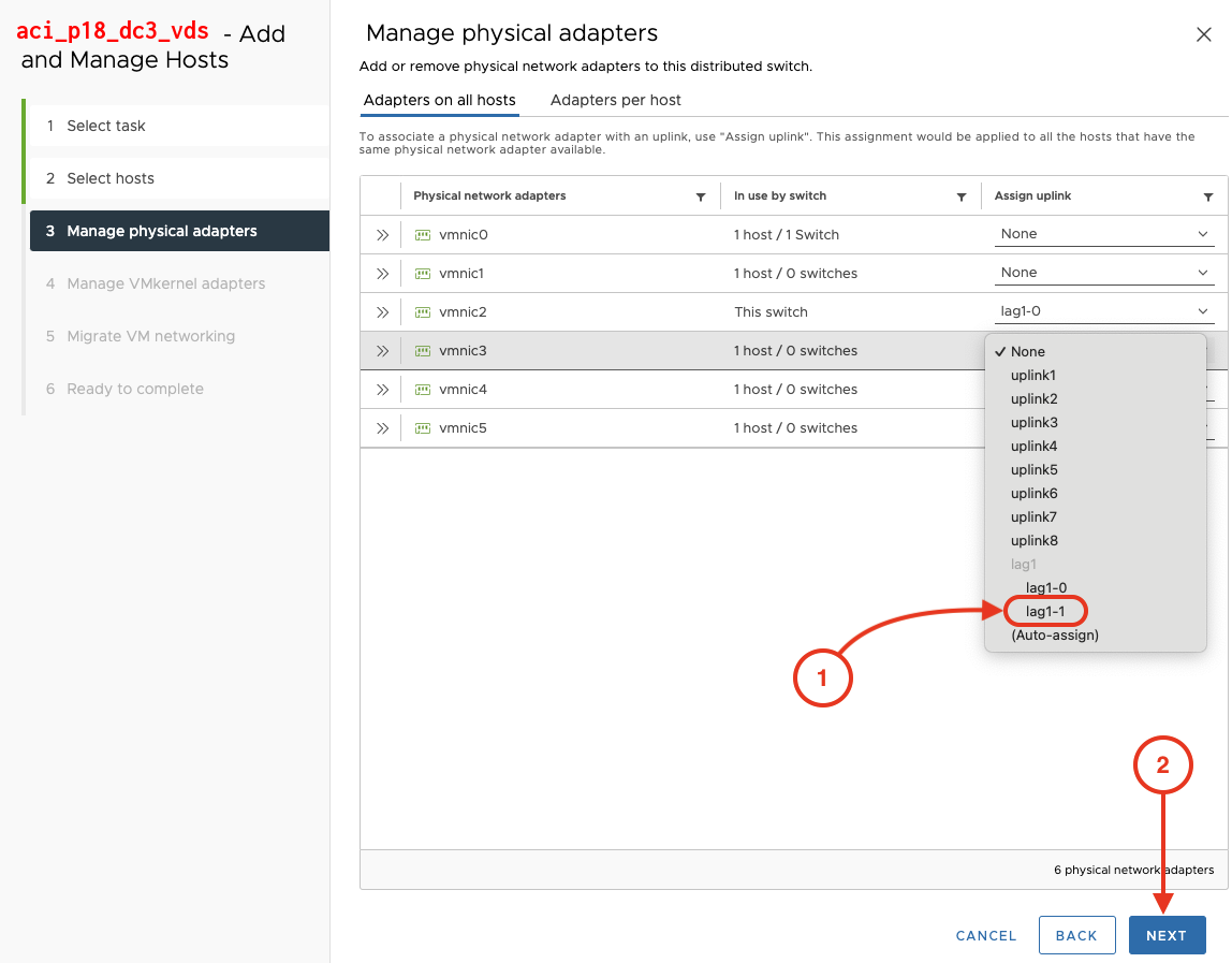 Step 6 - Assign Uplinks from Pod ESXi Host