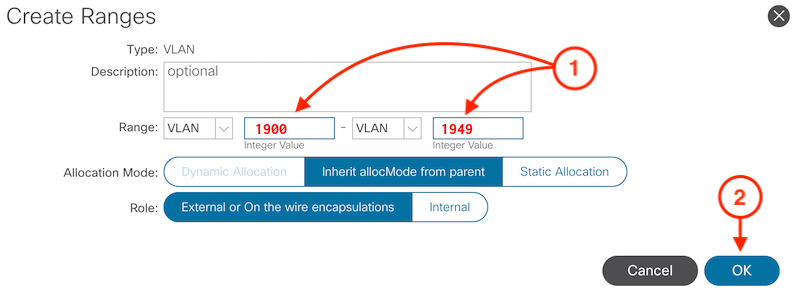 After clicking on the the plus sign (+) then you can enter your VLAN range for this pool: