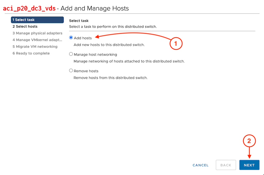 To complete the integration, an ESXi host needs to be added to the vDS created by APIC: