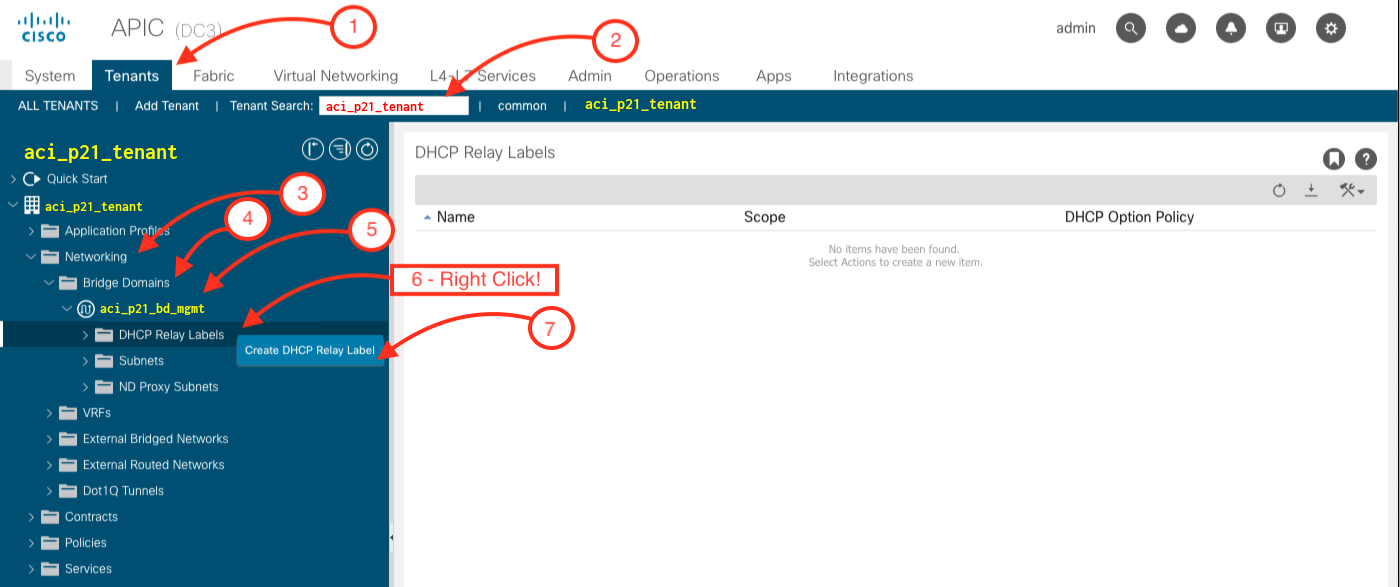 This lab will leverage the Tenant scope in order for each student to create their own DHCP Relay Label.