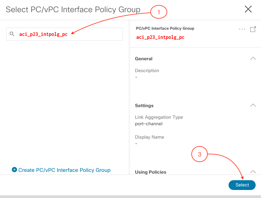 1. Click on Select PC/vPC Interface Policy Group