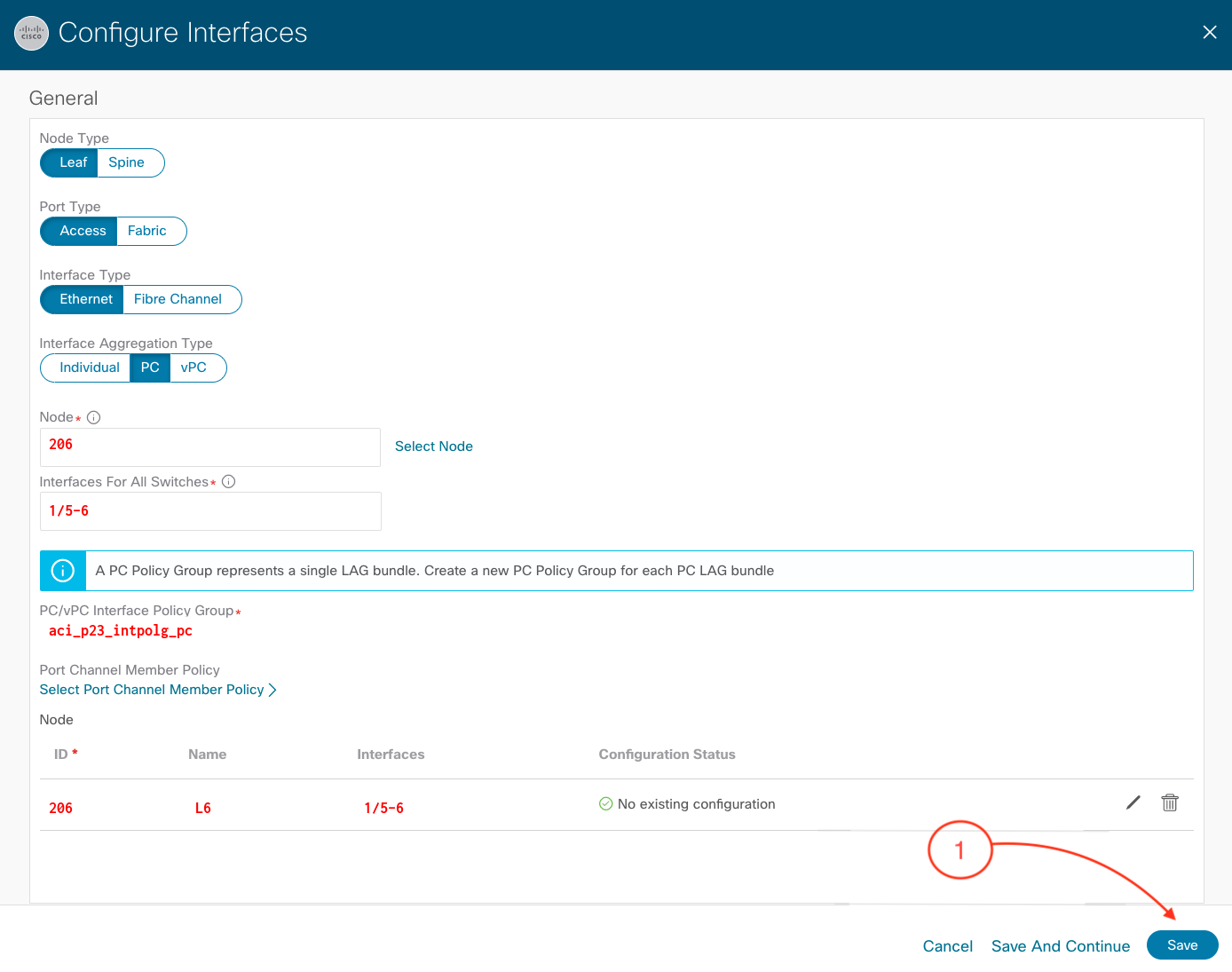 Step 5 - Select PC Interface Policy Group