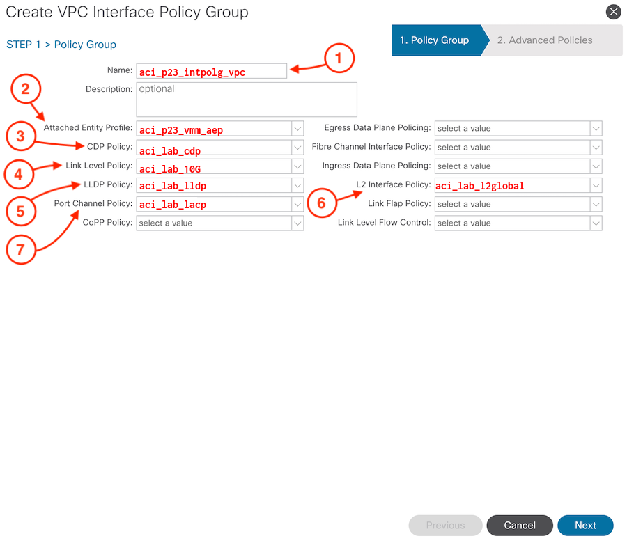 This VPC interface policy group is going to be used to connect to the compute host for the VMM domain.