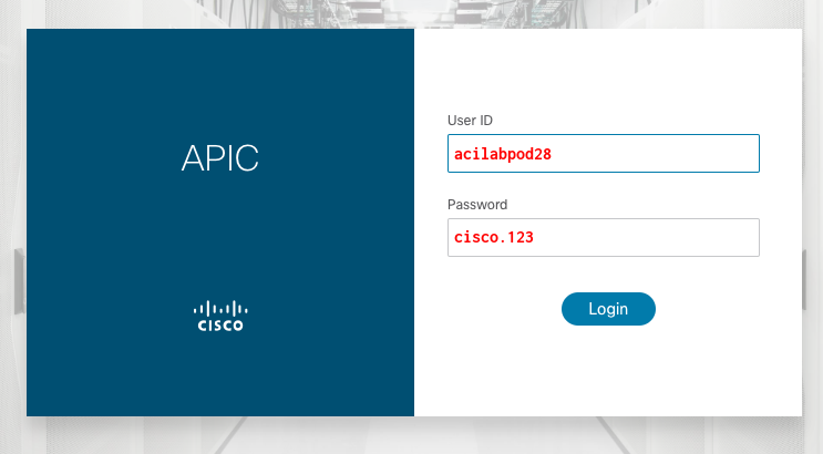 On the laptop you're using, open another tab window and navigate to one of the APIC URLs: