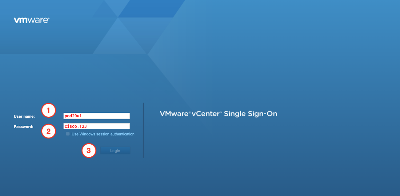You will connect to VMware vSphere via its HTML5 interface. Login using the information in the Credentials dropdown or, for your convenience, below: