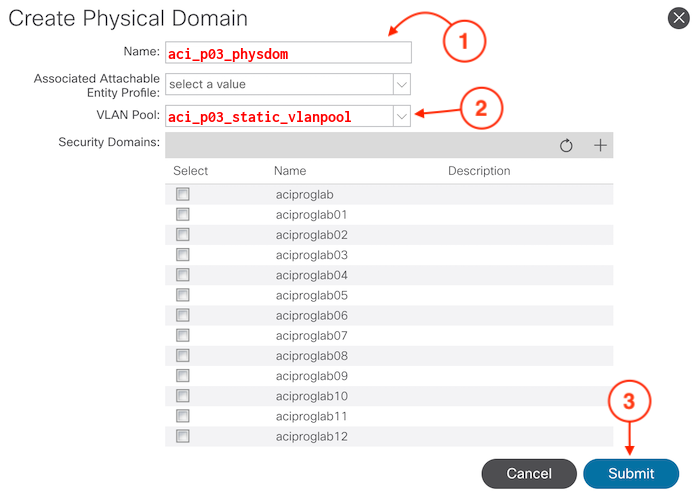 Step 2 - Name Physical Domain and Assign VLAN Pool