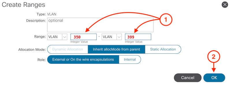 1. VLAN Range: 350 - 399