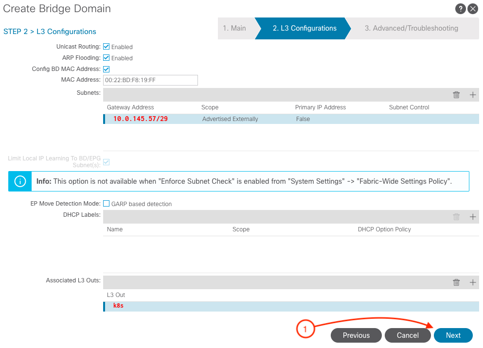 Check - Advertised Externally - We need to make sure to advertise this subnet to the rest of the network. By checking this knob, ACI